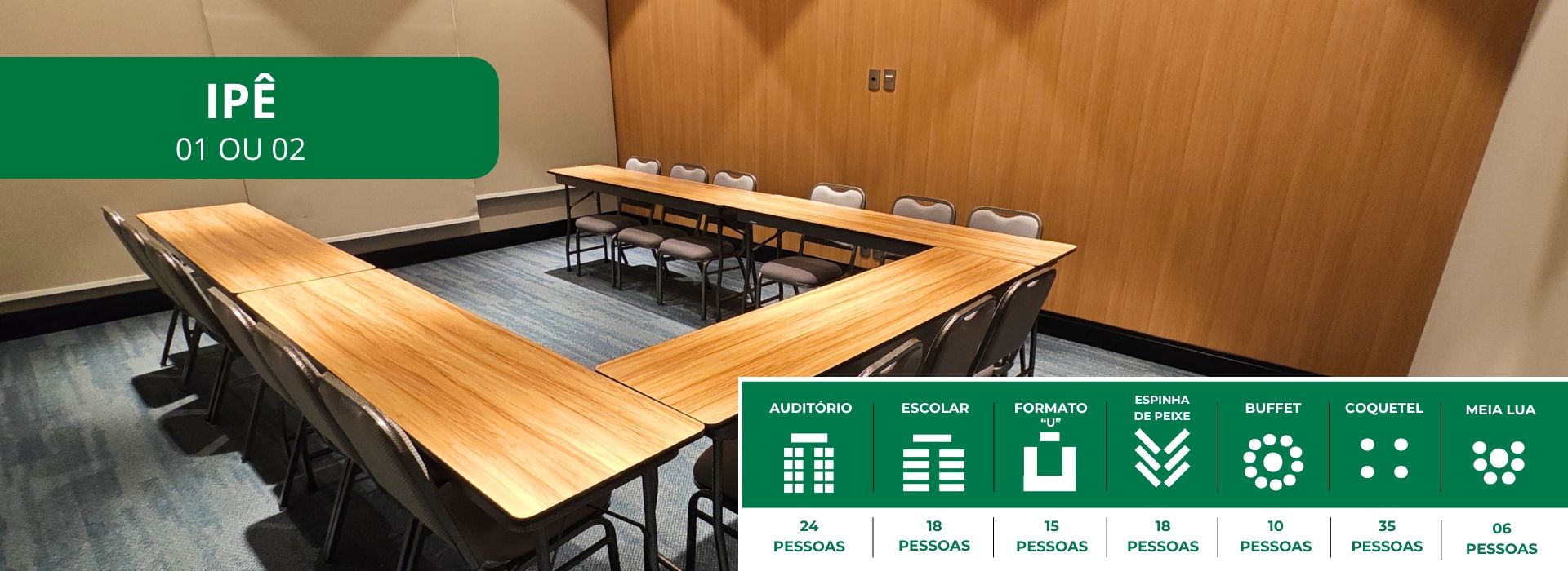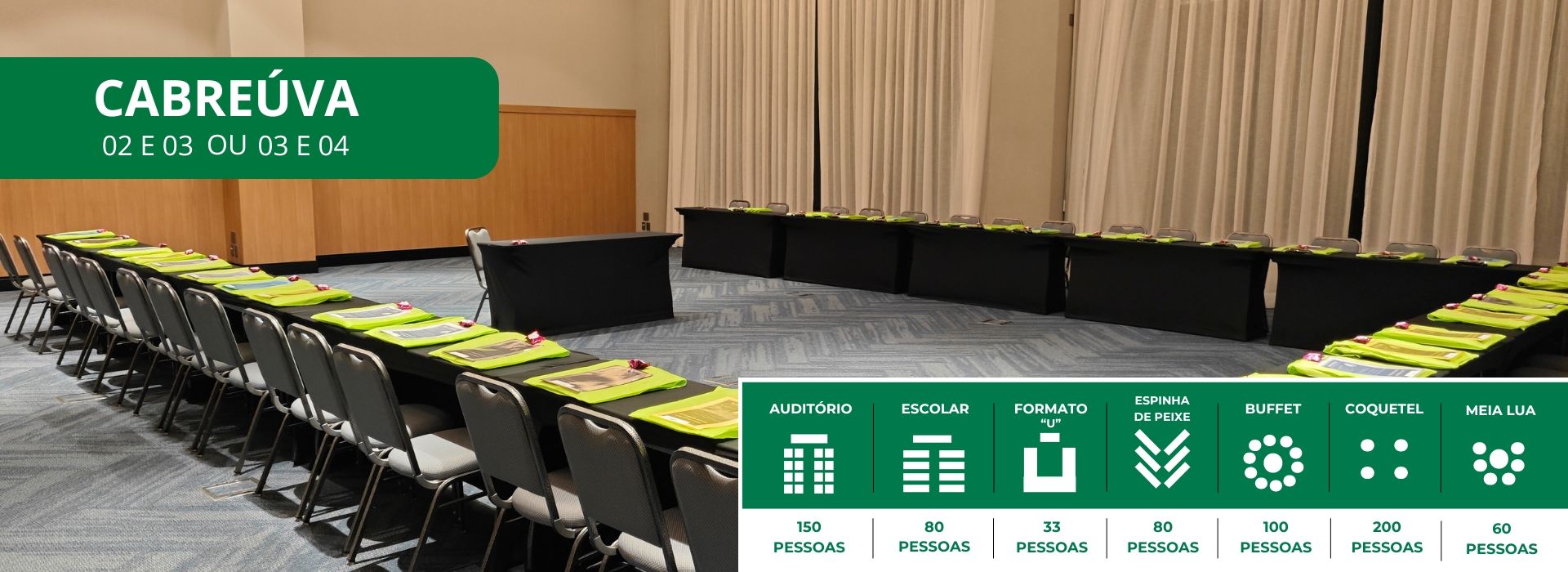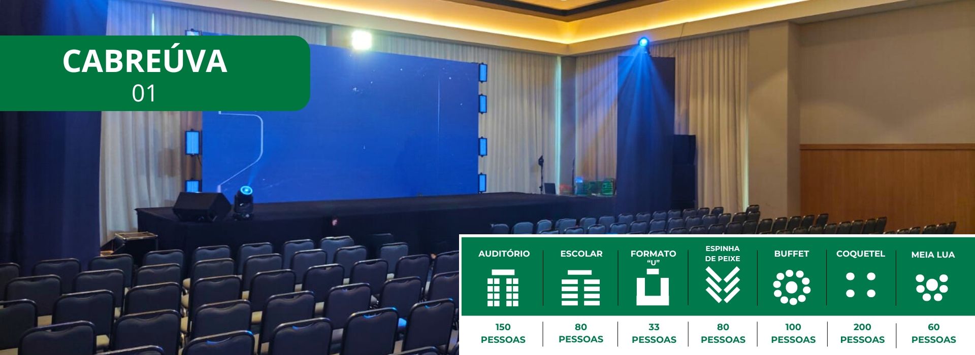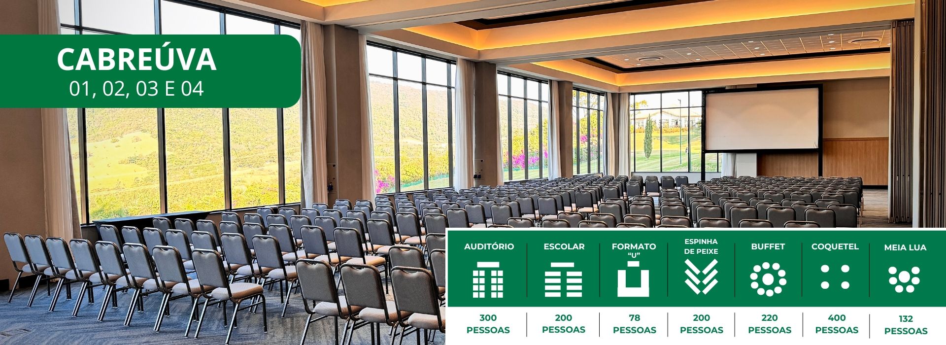 Eventos para até 350 pessoas em formato auditório, com hospedagem, mediante disponibilidade.